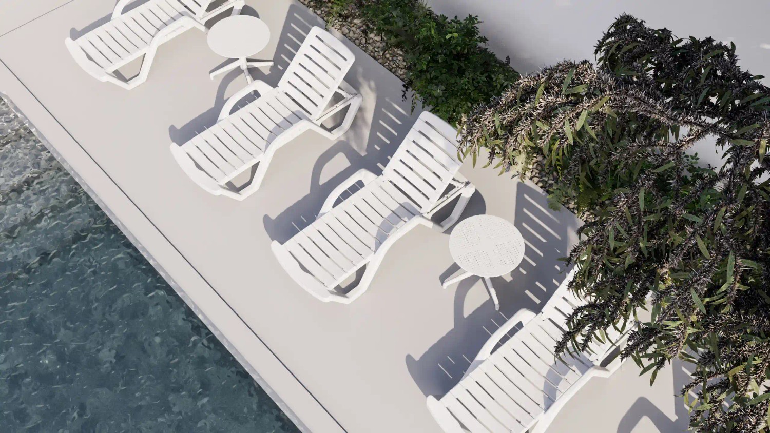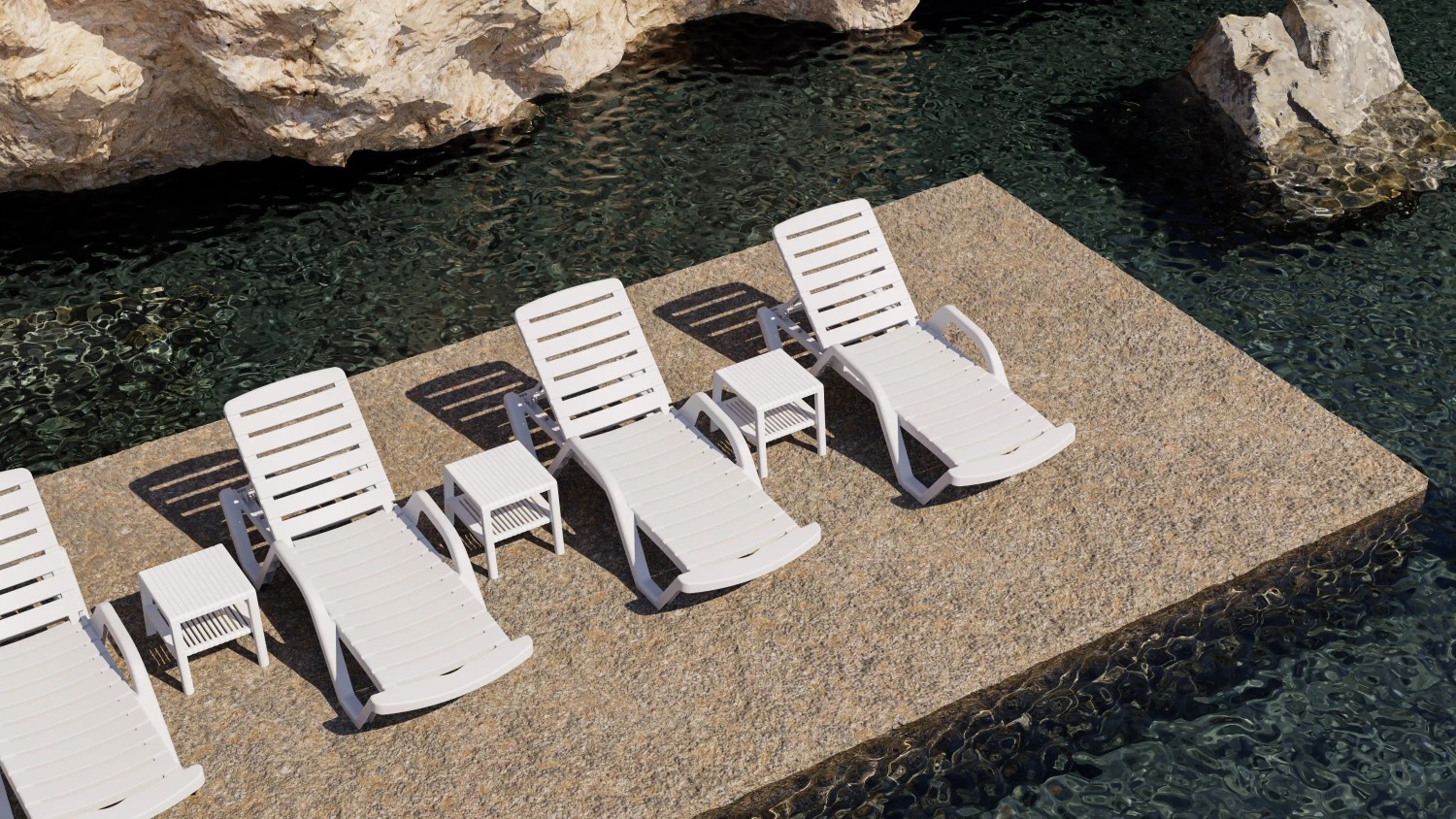 جسم من البولي بروبيلين معزز بالأشعة فوق البنفسجية والصبغات والألياف الزجاجية، ظهر، دعامة الظهر، عجلات النقل. يتكون كرسي الاستلقاء ذو الذراعين من العديد من المكونات مثل النعال PVC ذات السطح الواسع المضاد للانزلاق. جميع الأسطح البلاستيكية غير لامعة وذات نسيج محبب عالي المقاومة للتآكل. قابل للتكديس.