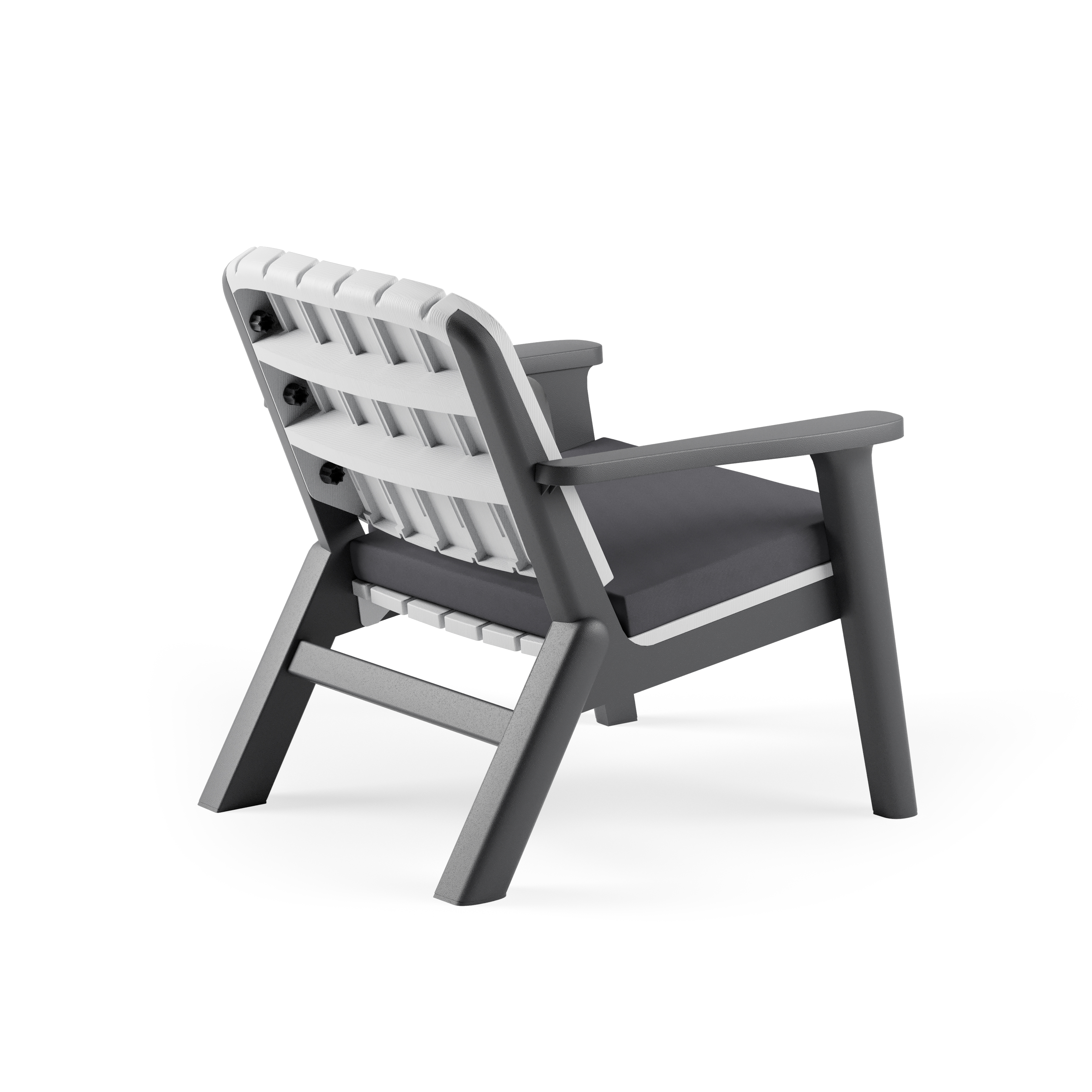 كرسي يتكون من عدة مكونات مثل المقعد البلاستيكي، الوسادة، الظهر، وأرجل التوصيل مع أو بدون مساند للذراعين. المواد: بولي بروبيلين معالج بالأشعة فوق البنفسجية، صبغة، وألياف زجاجية، وقماش تنجيد وإسفنج. أغطية الأرجل وعناصر التوصيل البلاستيكية. وسادة مغطاة بالقماش.