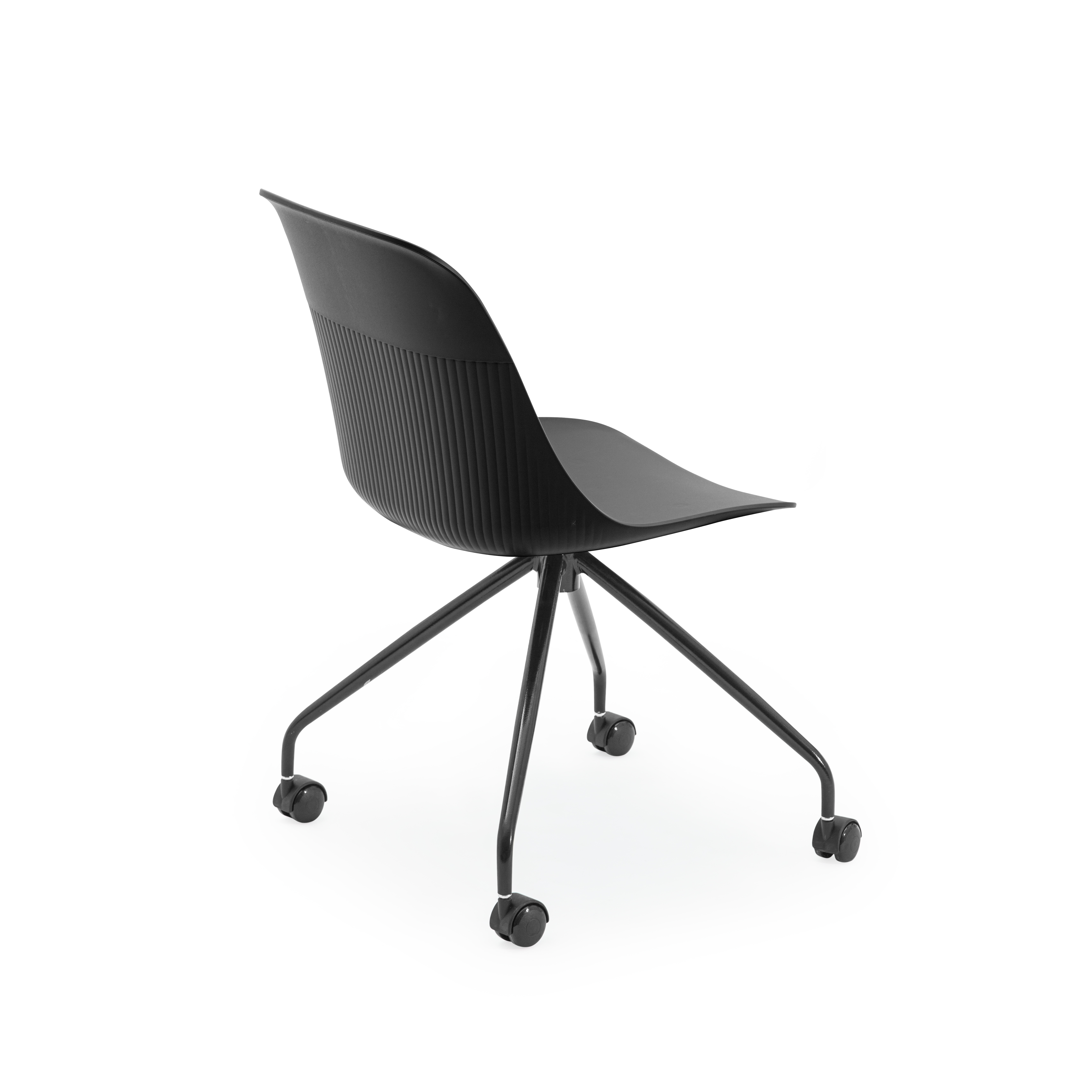 كرسي بدون مساند ذراع يتكون من عدة مكونات، مع مقعد بلاستيكي وسطح مقعد عالي المقاومة للتآكل وغير لامع وذو ملمس خشن، وأرجل معدنية مزودة بعجلات بلاستيكية تدور 360 درجة حول محورها بفضل قطعة وصل بينية، حيث أن الأرجل وقطعة الوصل مصنوعة من معدن مطلي بمسحوق خالٍ من المواد المذيبة ومعالج بشكل خاص، والهيكل من بولي بروبيلين معزز بالألياف الزجاجية ومزود بالأشعة فوق البنفسجية والصبغات، وعجلات الأرجل تركب تركيبًا محكمًا، بينما عناصر الربط مصنوعة من معدن مقاوم للصدأ.