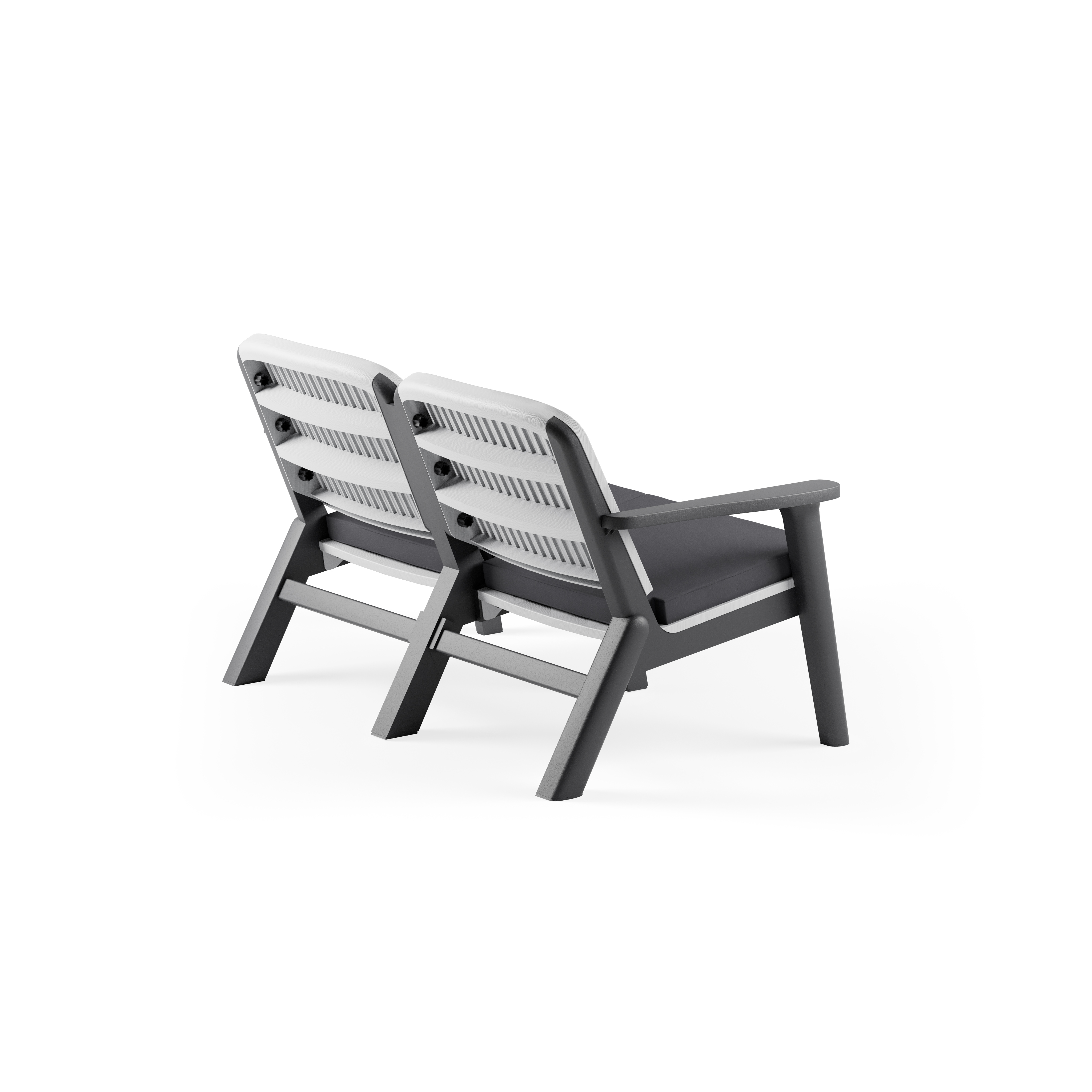 مجموعة المقاعد التي تتكون من العديد من المكونات مثل المقاعد البلاستيكية، الوسائد، الظهور، والوصلات السفلية مع أو بدون أذرع، ويمكن تركيبها بشكل فردي أو مزدوج أو ثلاثي حسب الرغبة. المواد: بولي بروبيلين معالج بالأشعة فوق البنفسجية، صبغة وألياف زجاجية، وقماش تنجيد وإسفنج. سدادات الأرجل وعناصر الربط البلاستيكية. وسادة مغطاة بالقماش.