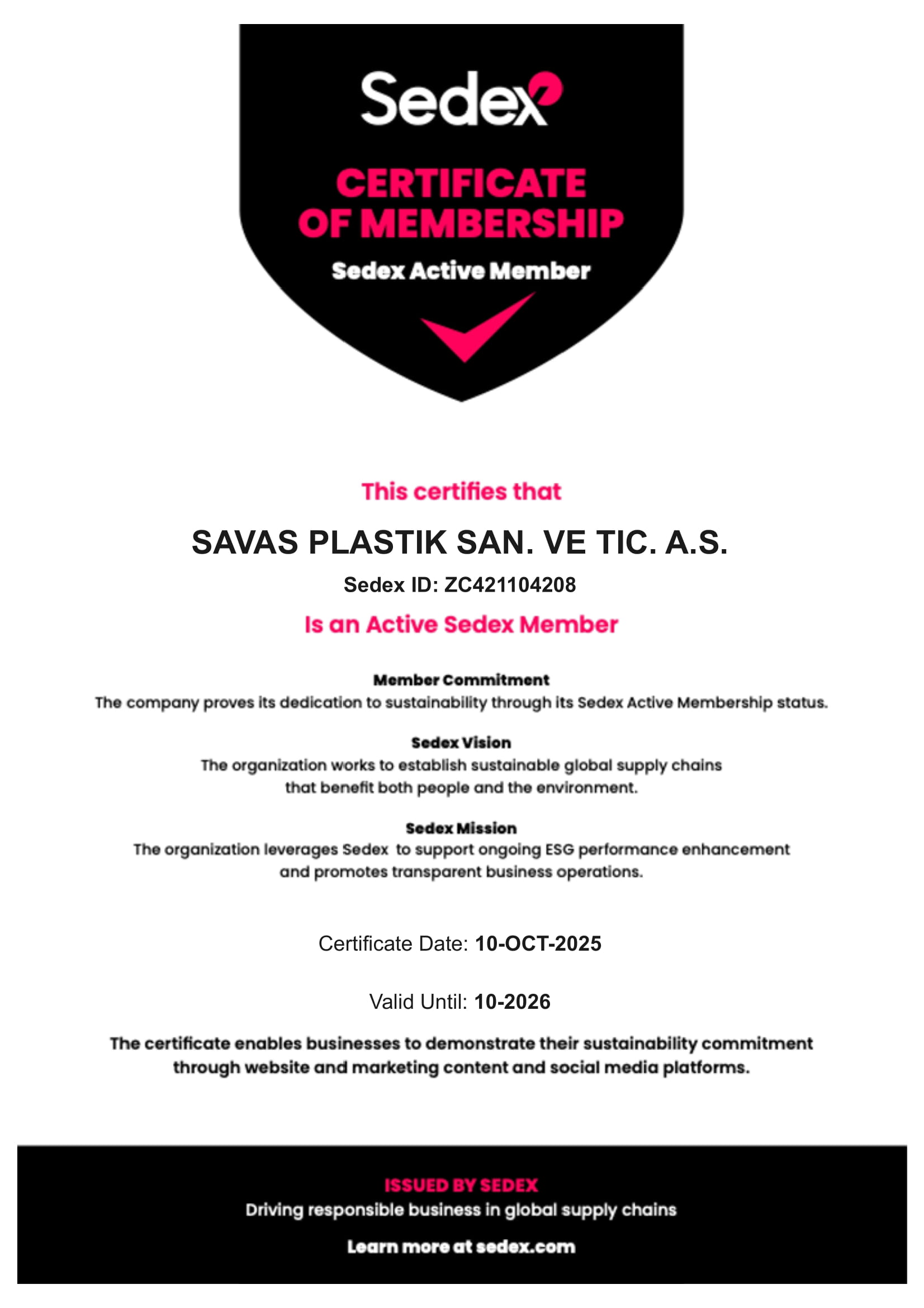 As an indication of its sensitivity towards business ethics, Savaş Plastik has implemented an Anti-Bribery Policy to contribute to the fight against bribery and corruption.