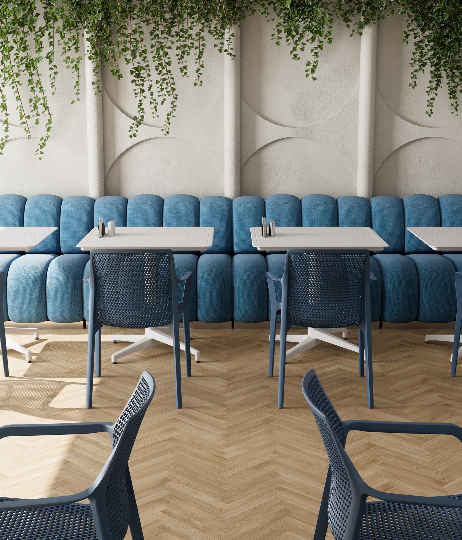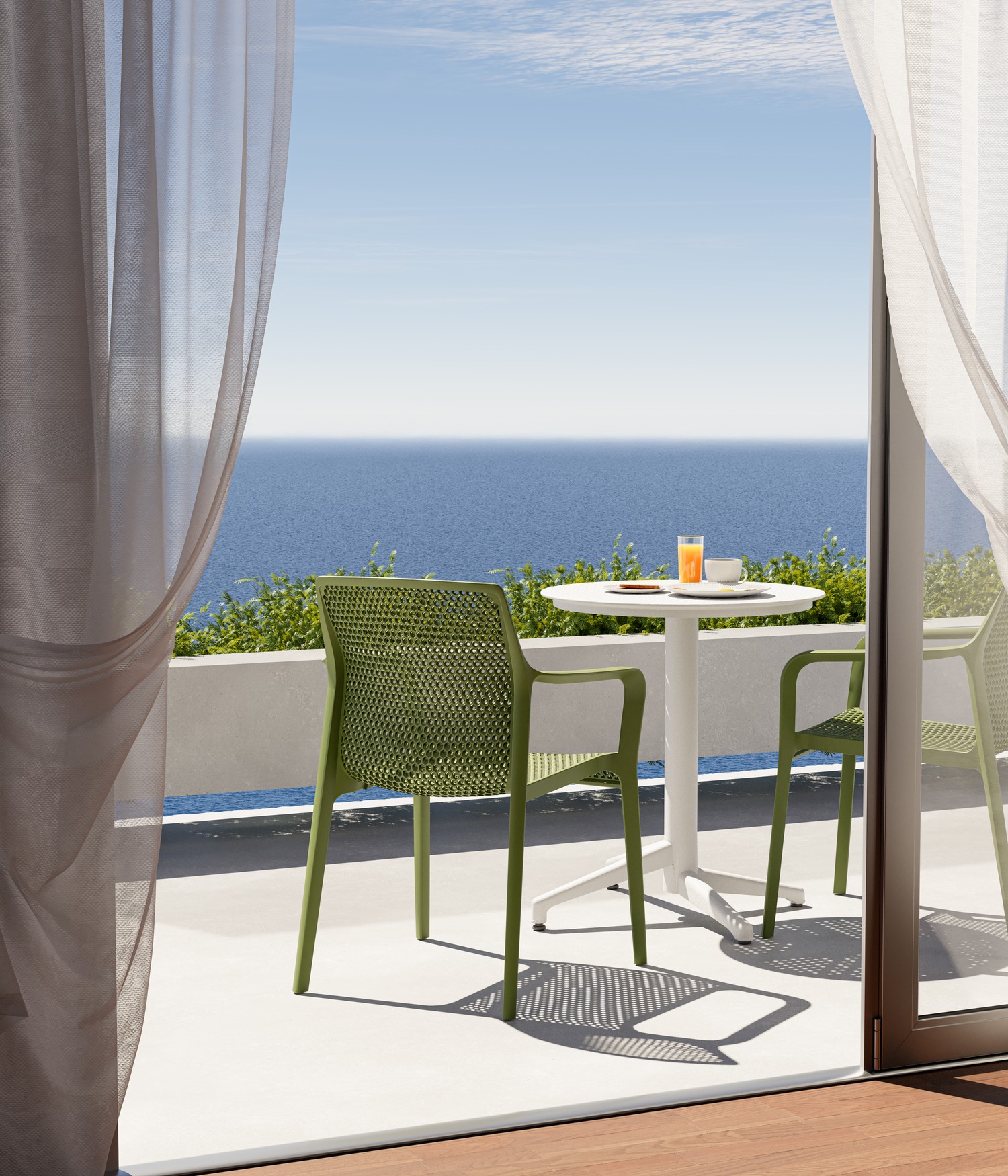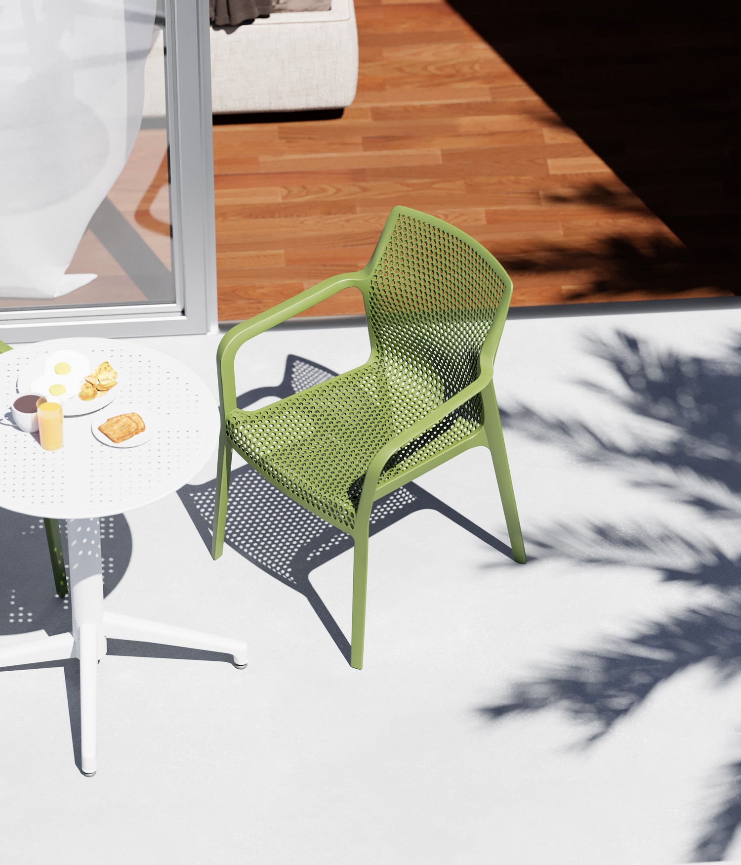 Light, strong, timeless. With its breathable perforated structure and modern form, Briza transforms any space into a refreshing atmosphere. Its ergonomic design ensures comfort even during long seating sessions. Thanks to its stackable structure, it can be easily carried and stored. From restaurants to hotels, from event venues to homes, it is ideal for use on every scale.