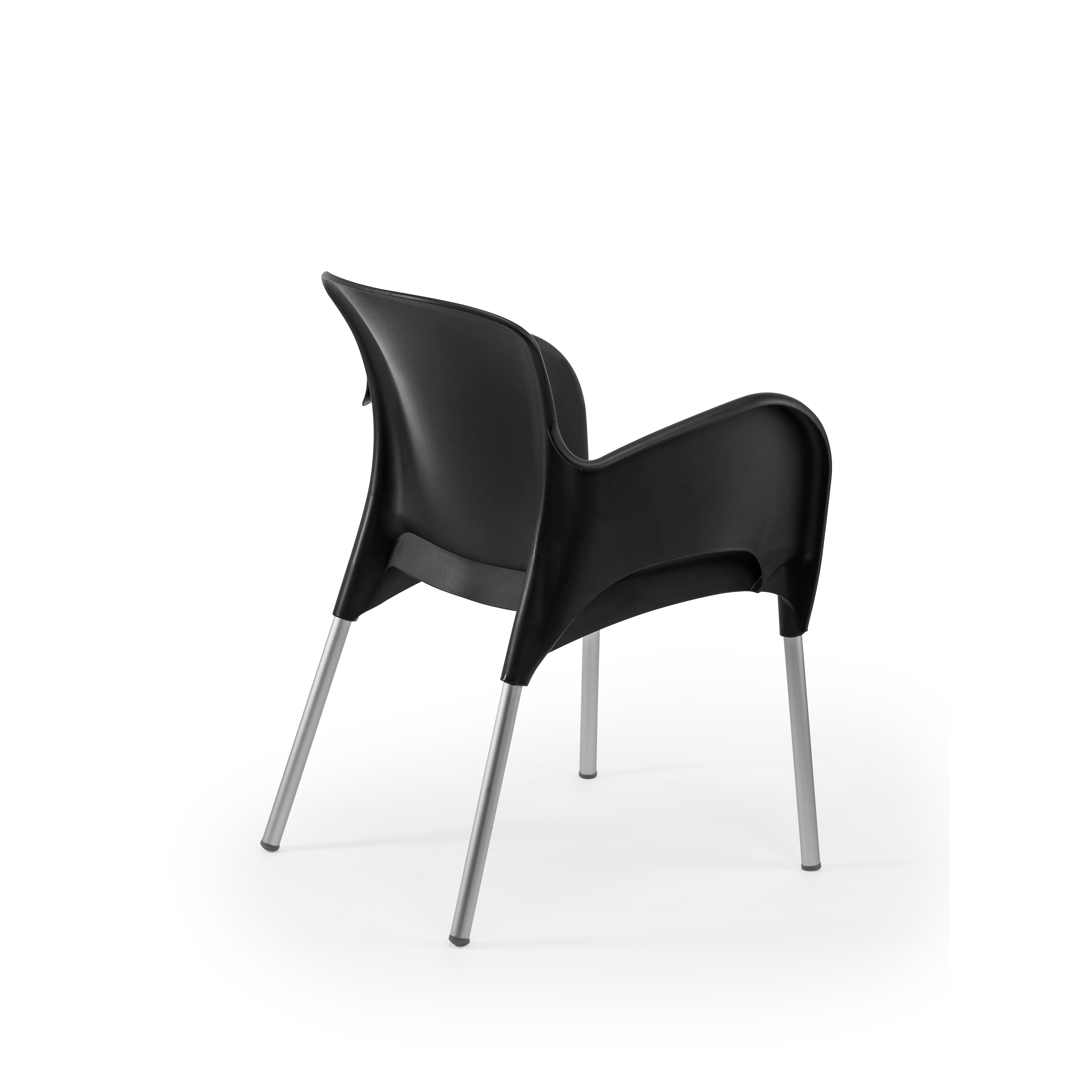 Plastic body and armchair with aluminum legs. All surfaces are highly abrasion-resistant, matte, and textured. Legs have a natural aluminum finish. Materials: Body: UV, pigment, and fiberglass polypropylene, Legs: Aluminum tube. Leg Caps: Non-slip made from natural PVC, (tight fit application)