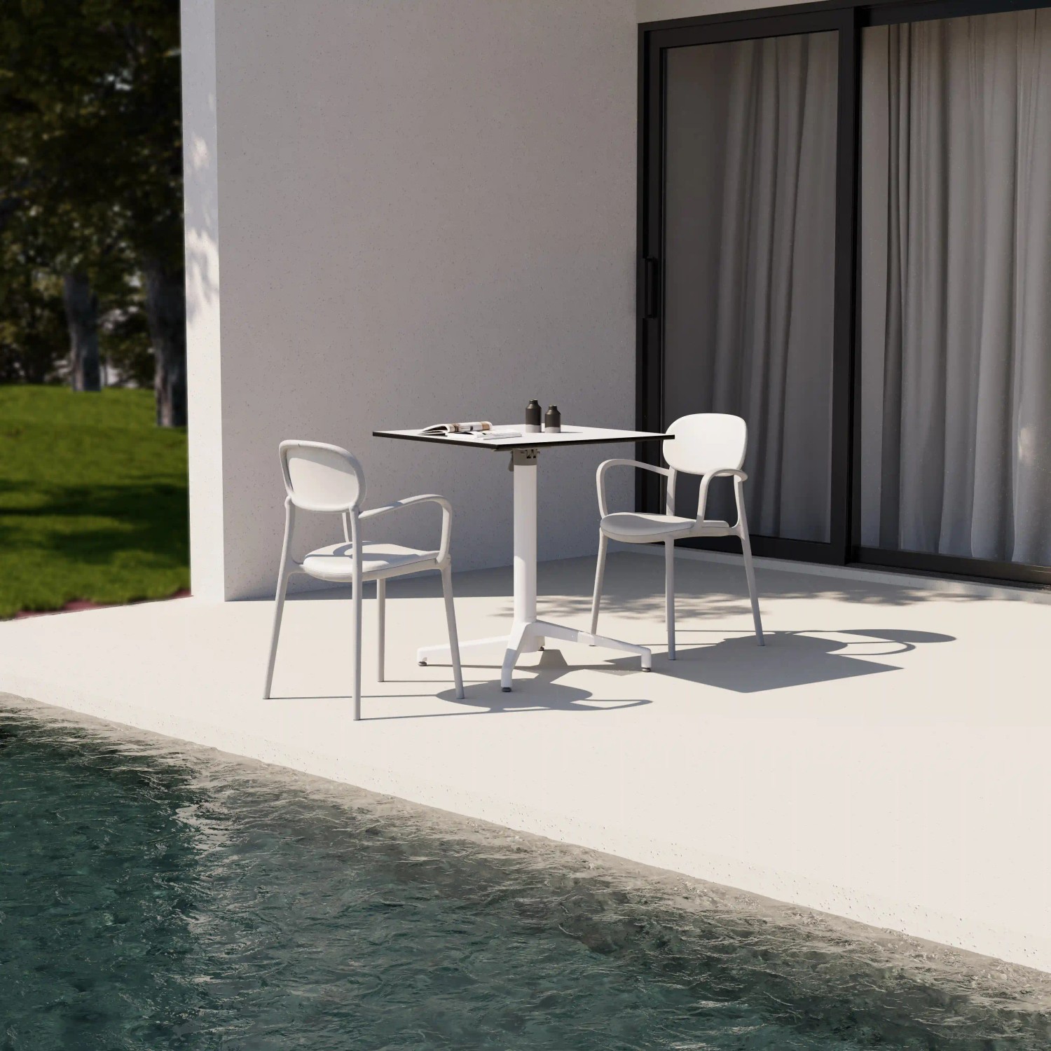 The Moon-C table, with its foldable and expandable body, makes stacking easy both indoors and outdoors! Its practical structure, easy-to-clean compact tabletop, and weather-resistant materials make it suitable for both indoor and outdoor use. With its new tabletop and legs designed to match the Moon, you can position it anywhere and fold it for storage when not in use.