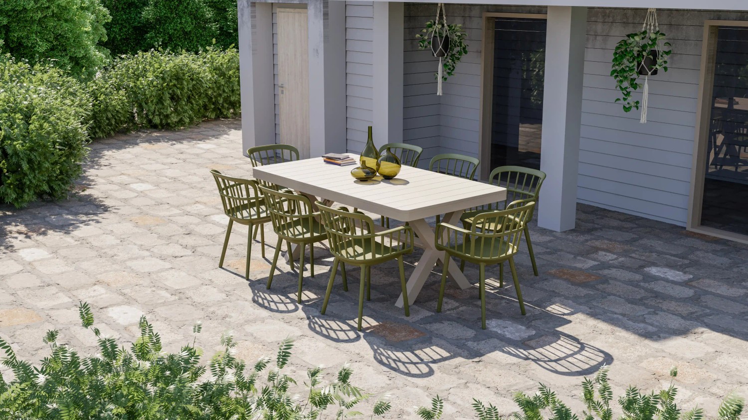 Кресло, состоящее из двух компонентов: моноблочной пластиковой ножки и сиденья. Все поверхности матовые и текстурированные, с высокой износостойкостью. Материалы: Корпус и моноблочные ножки: полипропилен, устойчивый к ультрафиолетовому излучению, пигментированный и армированный стекловолокном. Наконечники ножек: противоскользящий, из натурального ПВХ (с плотной посадкой). Крепёж: нержавеющая сталь.