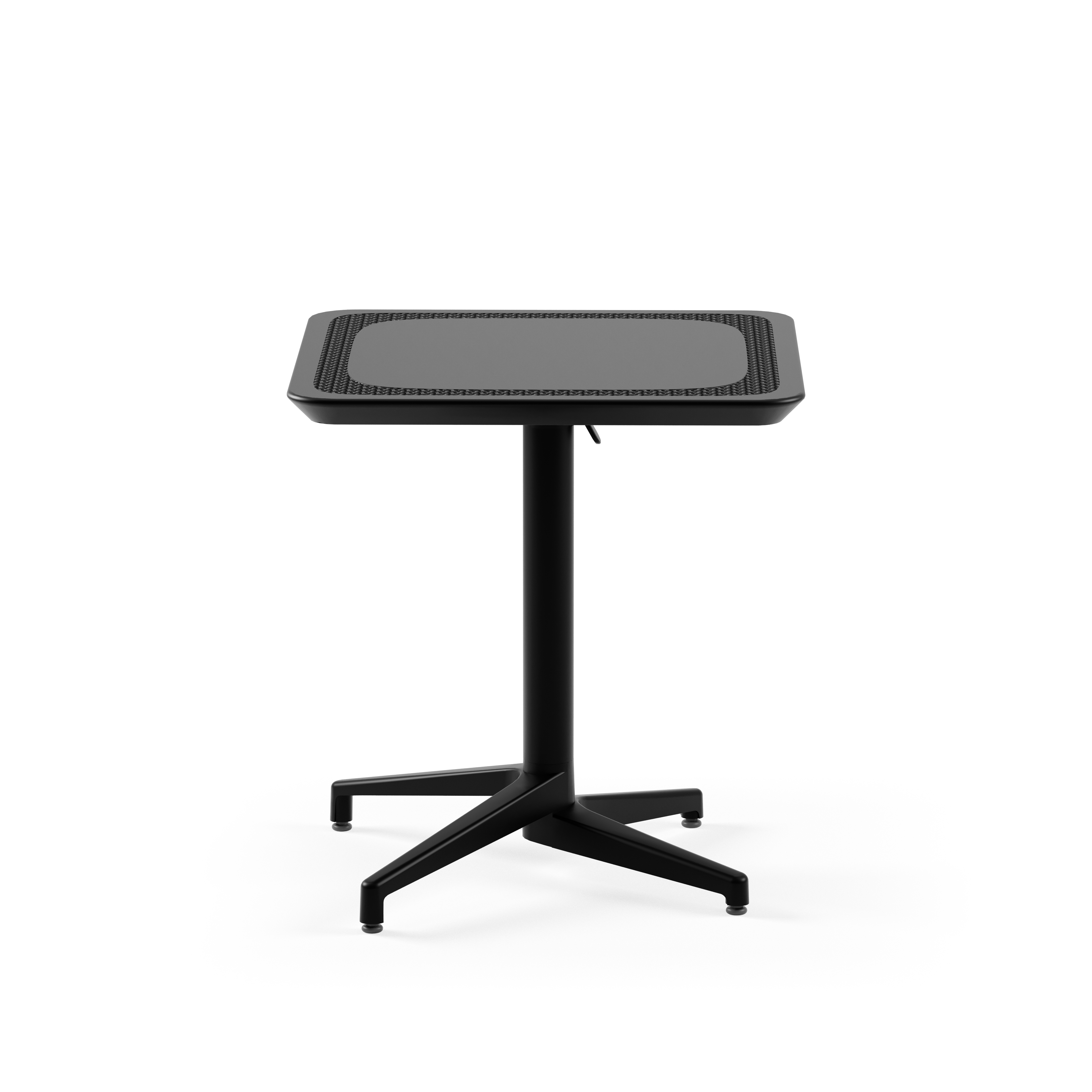 Стол, состоящий из нескольких компонентов, таких как пластиковая столешница, крестовина, ножки и алюминиевая трубка для ножек. Материалы: полипропилен/полиамид/полифталамид с УФ-защитой, пигментом и стекловолокном, регулируемый наконечник для ножек, алюминиевая трубка и крепежные элементы из нержавеющей стали. Пластиковые поверхности матовые и текстурированные с высокой стойкостью к износу. Металлические поверхности обработаны специальным образом, глянцевые, покрыты порошковой краской без растворителей. Нескользящие ножки.