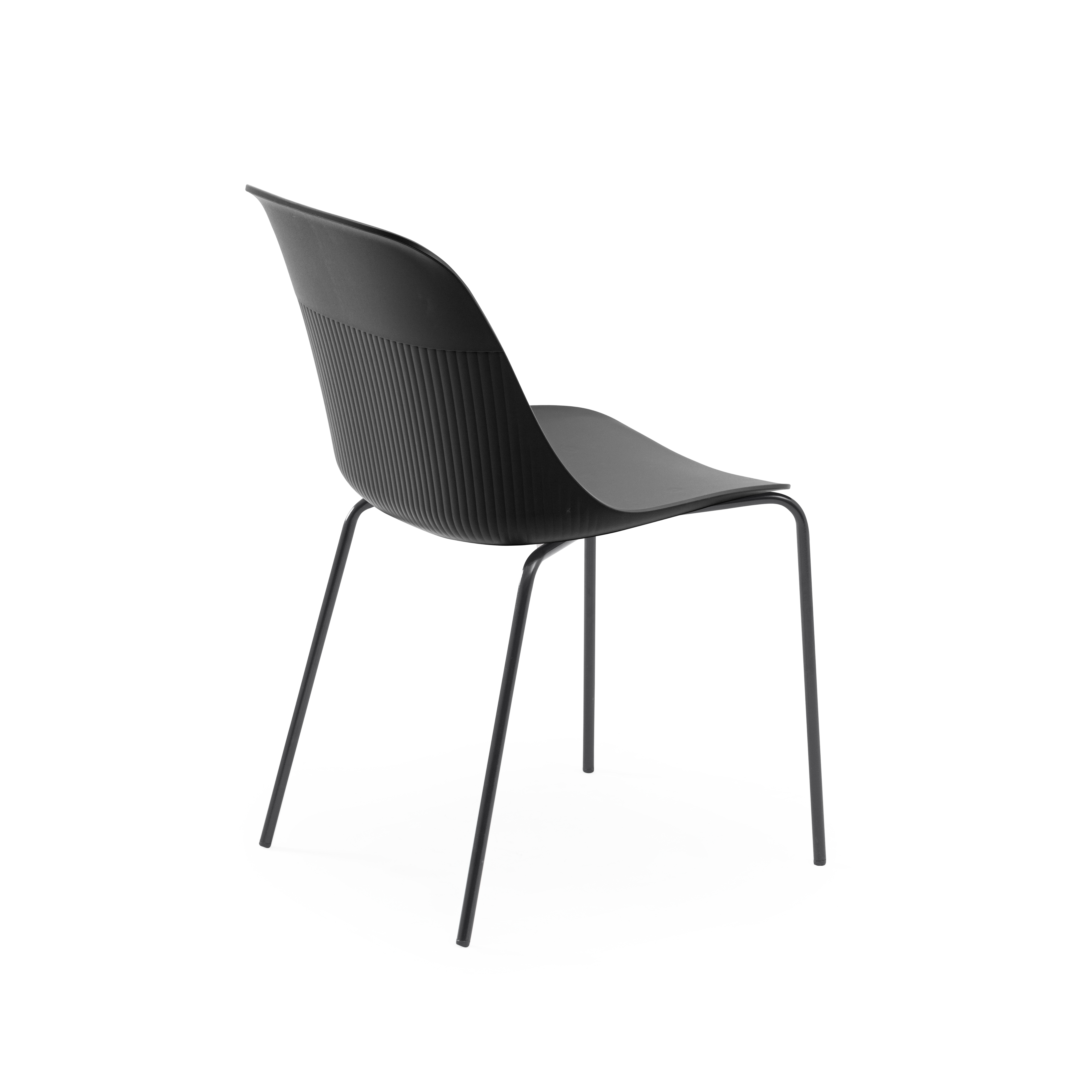 Моноблочный стул без подлокотников, состоящий из двух компонентов: металлические ножки и пластиковое сиденье. Поверхность сиденья матовая и шероховатая, с высокой стойкостью к износу. Поверхность металлических ножек обработана для придания блеска. Материалы: Корпус: полипропилен с УФ-стабилизатором, пигментами и стекловолокном. Заглушка ножек: полипропилен с пигментами и стекловолокном (применение методом плотной посадки). Ножки: металл и порошковая краска без содержания растворителей. Крепежные элементы: нержавеющий металл.