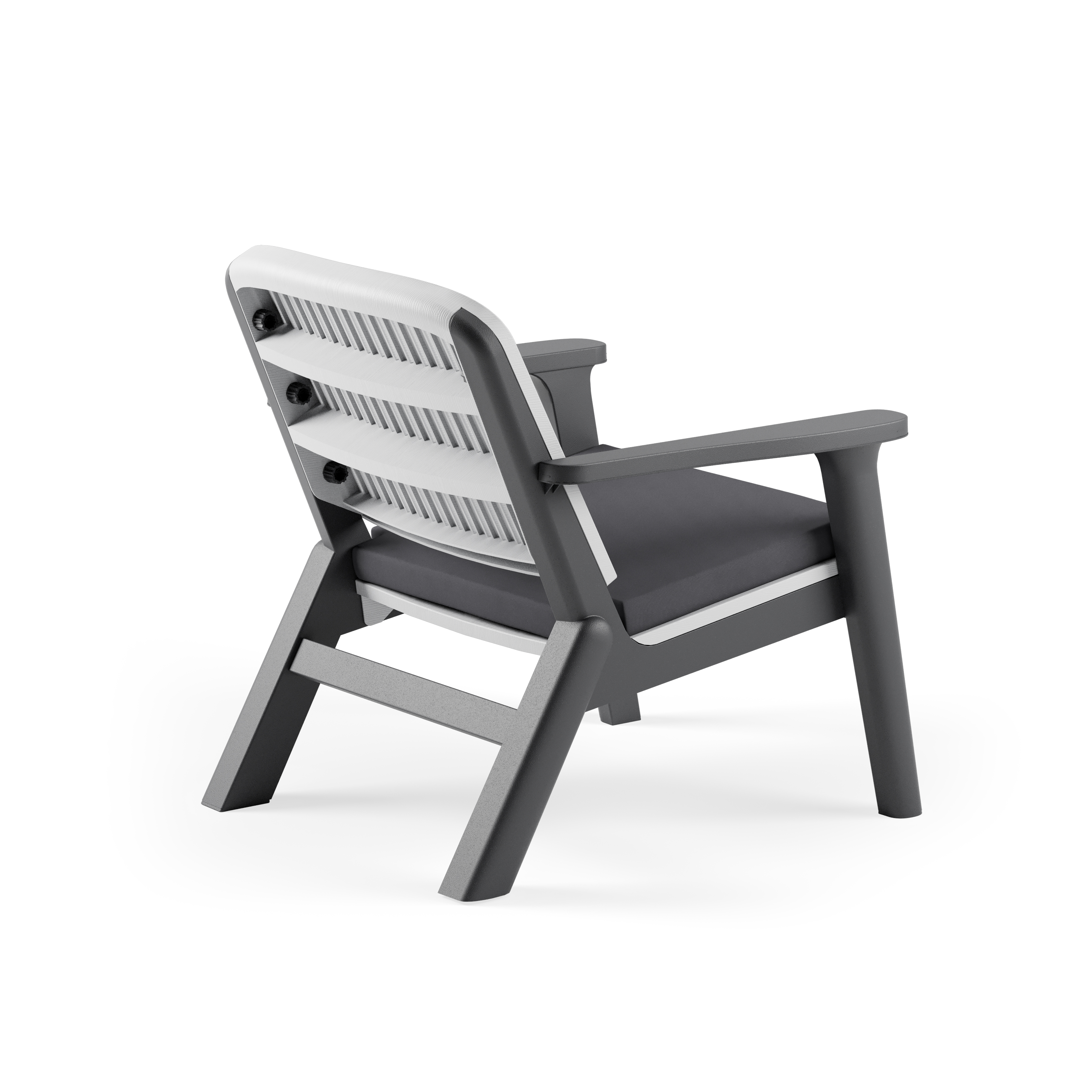 Plastik oturak, minder, sırt ve kollu veya kolsuz ayak bağlantıları olarak çok kompenentten oluşan Koltuk Malzemeler: UV, Pigment ve Cam elyaflı Polipropilen ve Döşemelik kumaş ve sünger. Ayak tapaları ve plastik bağlantı elemanları. Kumaş kaplı minder.